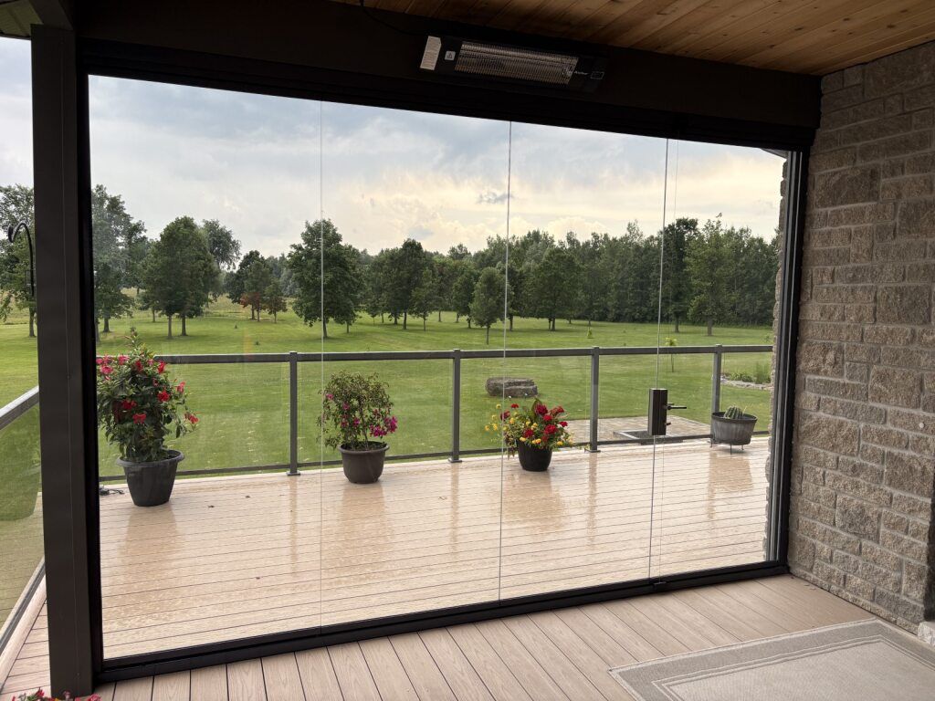 Patio heaters and outdoor electric fireplaces will keep you warm far into winter when you use our glass walls to keep the wind and snow out.