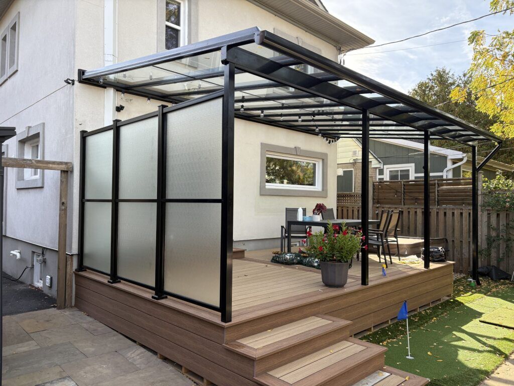 Glass roofs and awnings are a great way to stay protected from the weather while staying connected to the beauty of nature and the night sky. Available with their sliding glass walls for a versatile three season sunroom, these glass roofs give you year round weather protection and full visibility of the sky and your surroundings. Integrated railing options make this a great choice for backyard gardens and cottage decks where the view is too good to block out.