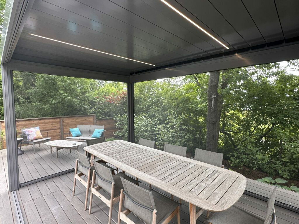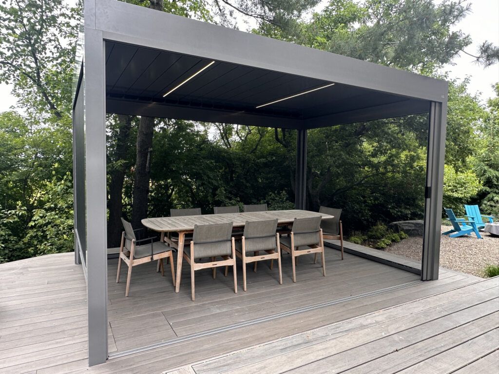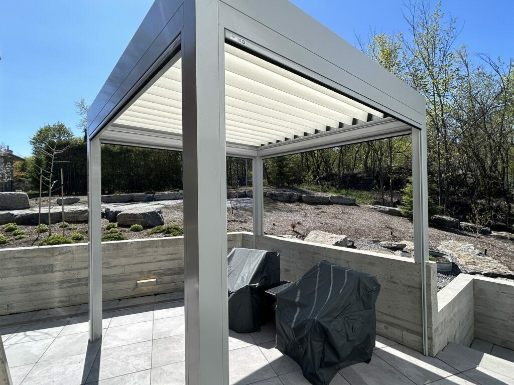 Our aluminum and Stobag Bavona pergolas are available in a variety of colours, fabrics, and options. With our ability to custom design pergolas, we can accommodate any of your specifications.