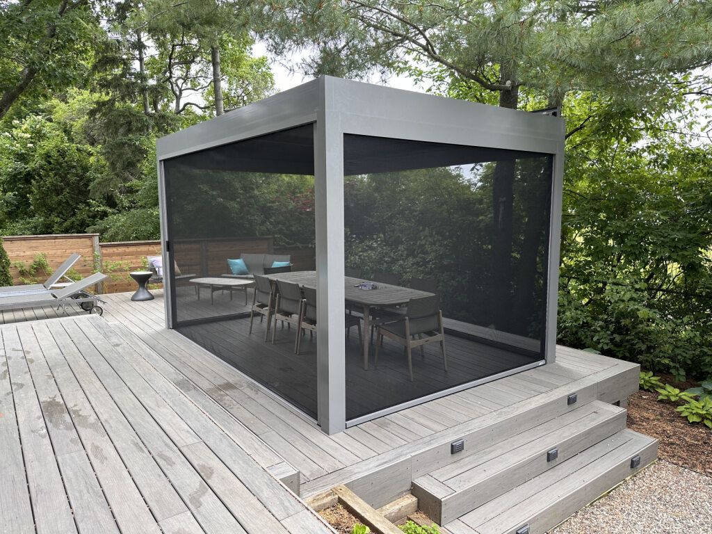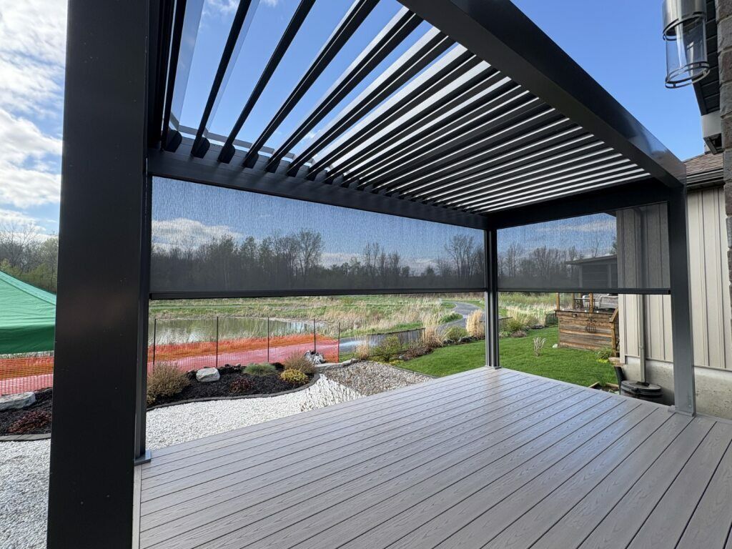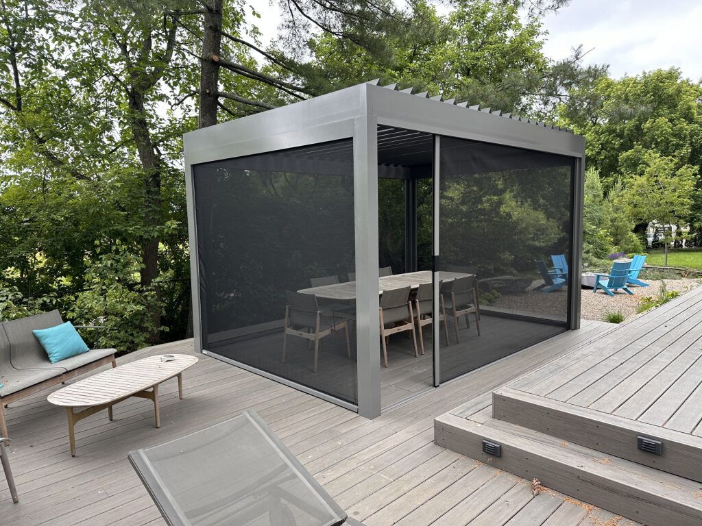 Our aluminum and Stobag Bavona pergolas are available in a variety of colours, fabrics, and options. With our ability to custom design pergolas, we can accommodate any of your specifications.