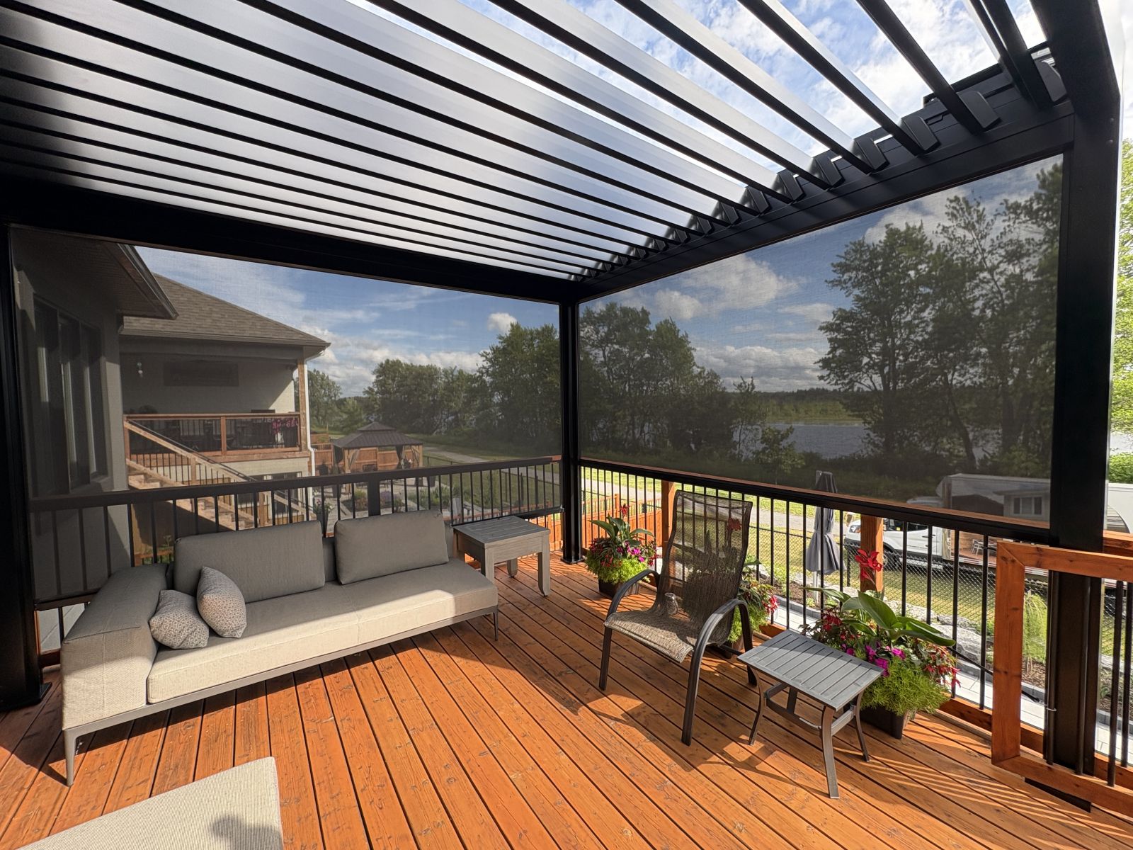 Our aluminum and Stobag Bavona pergolas are available in a variety of colours, fabrics, and options. With our ability to custom design pergolas, we can accommodate any of your specifications.