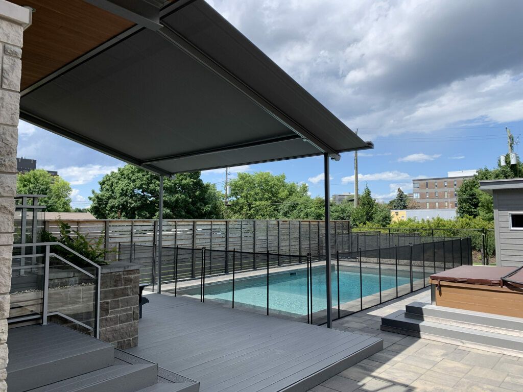 Our retractable awnings roll in or out at the touch of a button, with manual control options available, so that you can have exactly as much shade as you need while still being able to enjoy the sun. We offer a range of beautiful designs and premium European fabrics that are sure to add to the ambiance of your backyard. Visit our showroom or contact us for a free site visit to see what we can do for you.